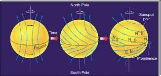 En los polos magnéticos entran partículas que están cargadas de viento solar, y que al chocar con las capas altas de la atmósfera, forman las auroras boreales (en el hemisferio norte) y australes (en el hemisferio meridional). Si este efecto es demasiado fuerte se pueden llegar a producir tormentas solares.